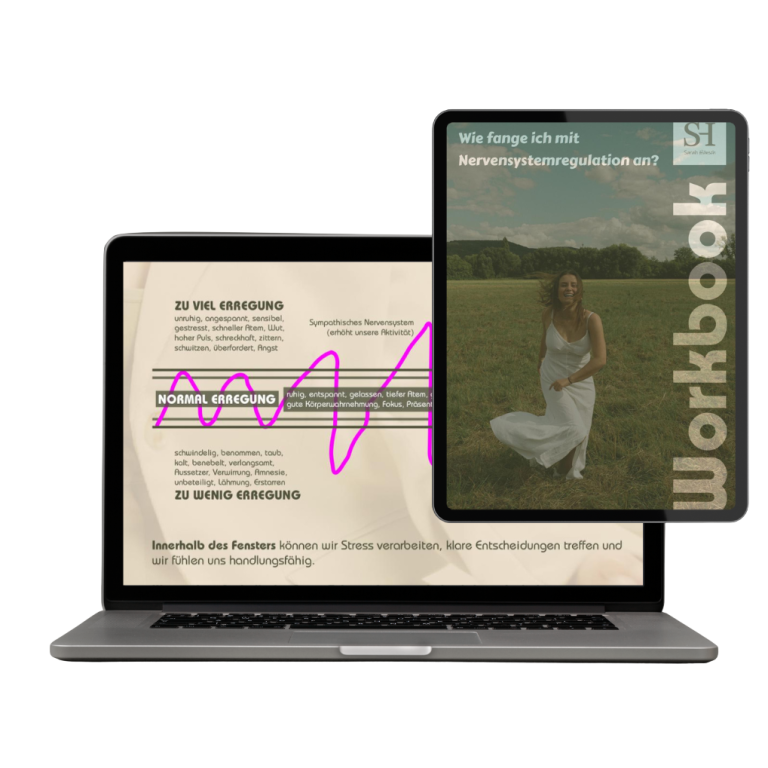 Als Dankeschön erhältst du direkt mein Workbook, das dir zeigt, wie du wieder mehr Verbindung zu deinem Körper findest, dich regulierst und kleine Momente der Ruhe in deinen Alltag bringst. Darin findest du außerdem vier praktische Übungen, die dich dabei unterstützen.