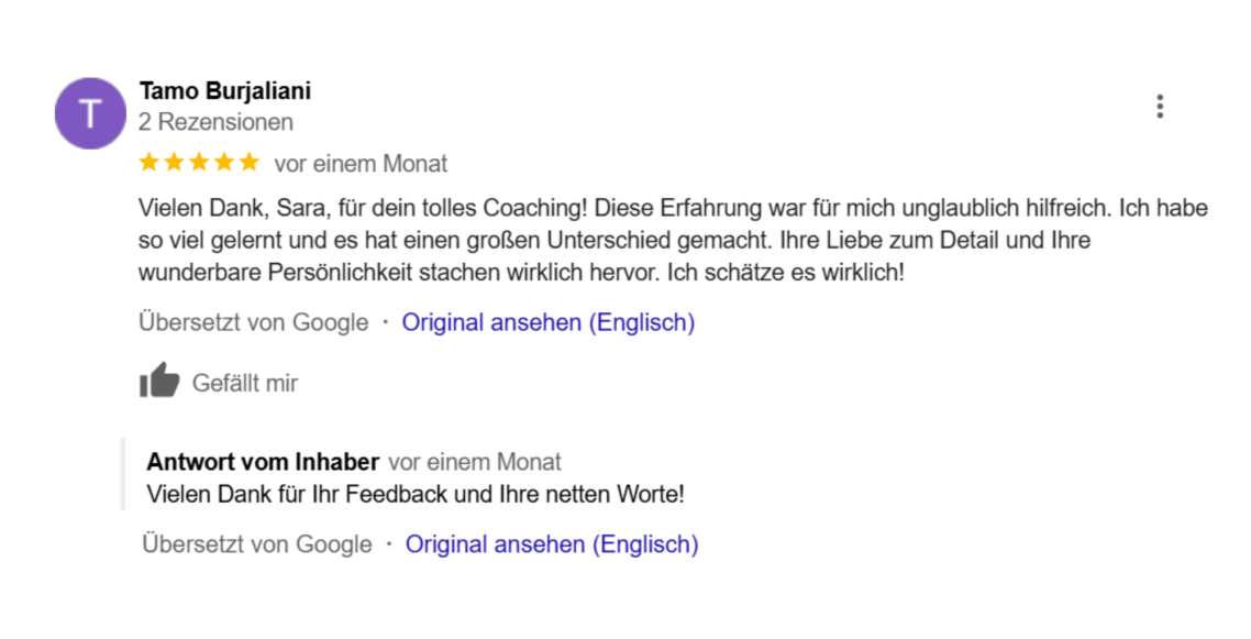"Ich möchte mich bei dir nochmals herzlich für diese 4 sehr lehrreichen und inspirierenden Wochen in deinem Workshop bedanken.